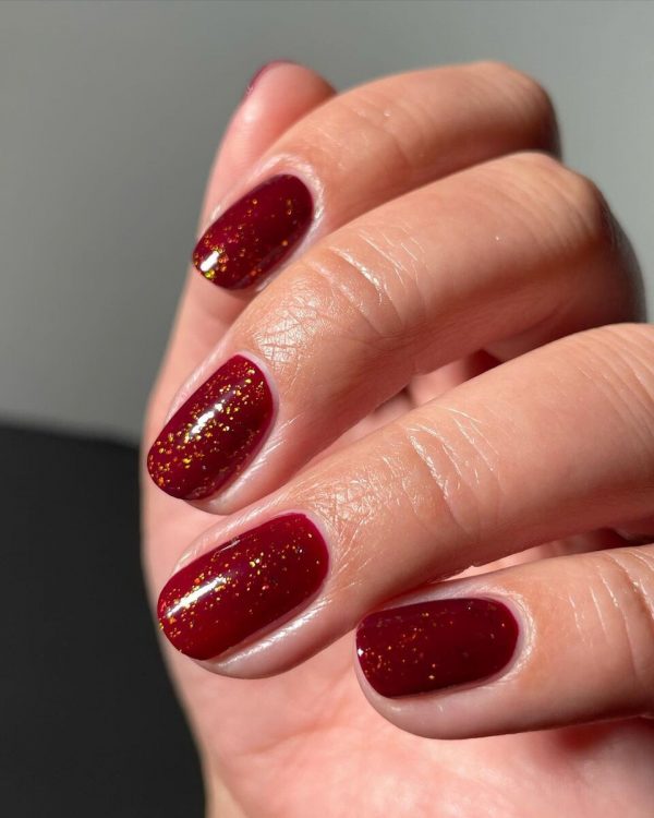 Червоний – один із улюблених кольорів символу наступного року – Зеленого Дерев’яного Дракона. У Китаї червоний — колір вогню, а отже, колір сили, щастя і процвітання. Тому всім, хто хоче залучити до свого життя удачу та нові кар’єрні звершення, астрологи рекомендують зробити вибір саме на користь червоного манікюру. Причому про однотонне покриття у новорічну ніч краще забути — манікюр має бути буквально «багатий»: великий гліттер, сяюче втирання та шматочки золотої фольги стануть чудовою прикрасою для червоного манікюру.