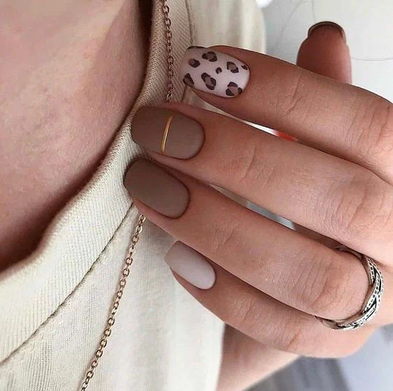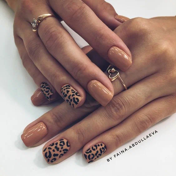 Нейл майстри зазначають, що леопардовий принт у манікюрі набирає обертів із кожним новим сезоном. Перед вами наочний приклад модного поєднання кольорів: нюд + леопардовий принт.