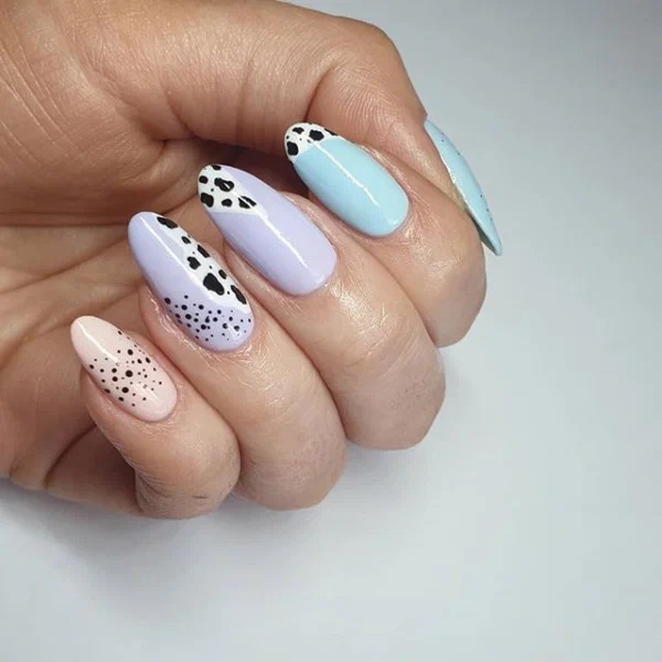 Коров’ячий принт більш універсальний, ніж багато інших тваринних принтів. Це дає вам свободу у виборі дизайну нігтів – він може бути різким, крутим чи дівчачим. Ви можете вибрати м’які, пастельні кольори та додати інші принти та візерунки, щоб створити ніжний та жіночний манікюр.