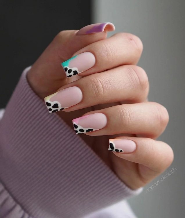 Пастельні нігті з коров’ячим принтом