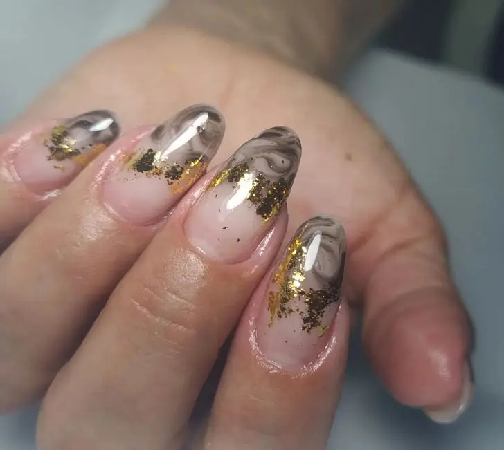 Присипте свій мармуровий манікюр золотими пластівцями