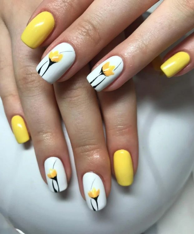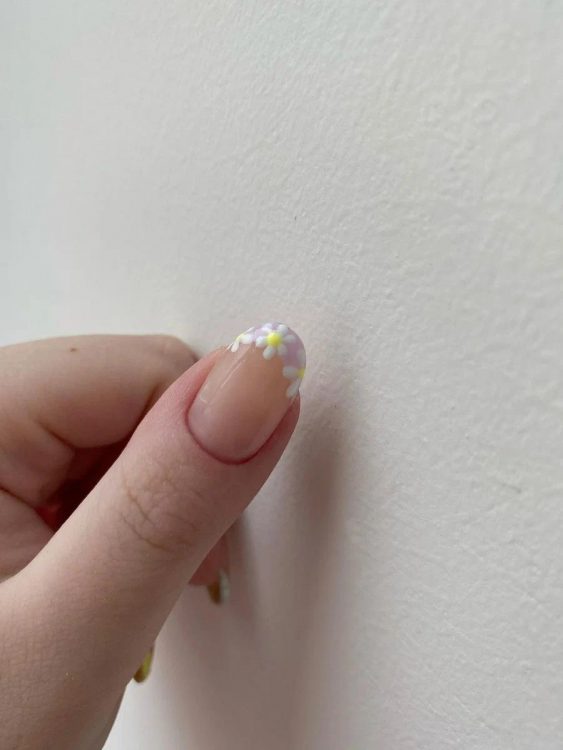 Ще одна ідея для літнього манікюру – використання флористичних дизайнів. Акуратні гілочки чи листочки на ніжному чи нейтральному фоні – чудовий варіант для тих, хто хоче спробувати дизайни.