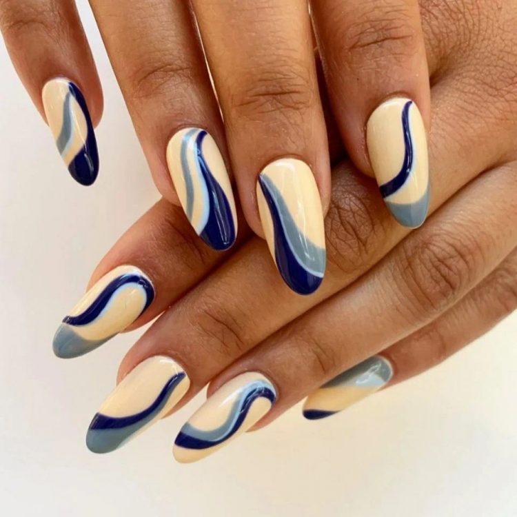 Різноманітності додадуть хвилясті лінії на нігтях, які будуть виконані пастельними відтінками, наприклад, м’ятний з ніжно-рожевим або приглушено-жовтий з блакитним.