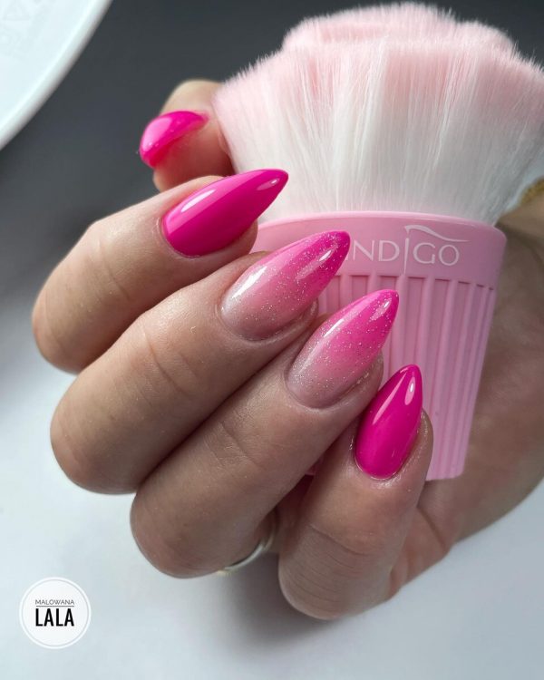 Рожеві блискучі нігті в стилі омбре