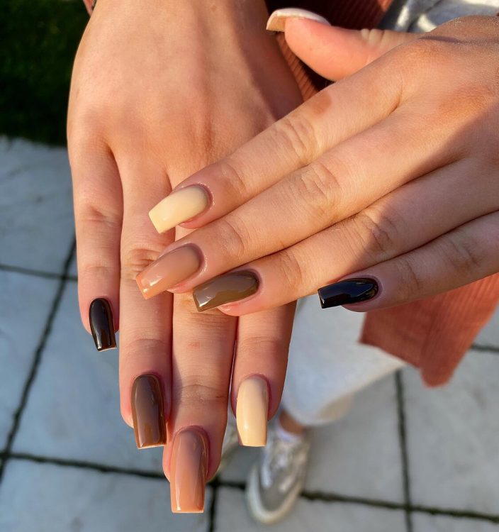 Якщо ви не можете вибрати улюблений відтінок коричневого, використовуйте їх для створення горизонтального омбре. Цей універсальний дизайн у нейтральних тонах ідеально впишеться у будь-який образ.