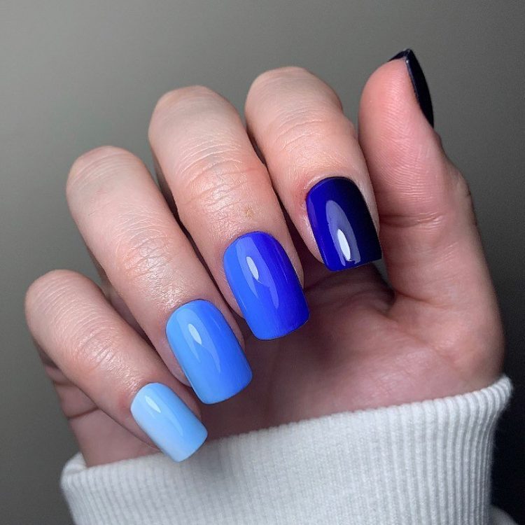 У цьому манікюрі представлено всю барвисту палітру синього кольору. Такий дизайн нігтів освіжить образ і зробить його ефектнішим.
