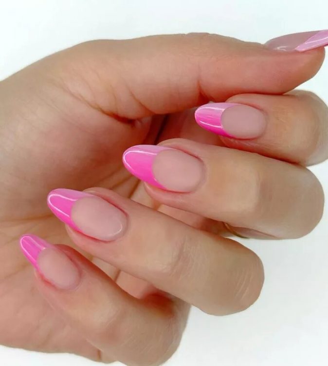 Спробуйте зробити французький манікюр оригінальнішим за допомогою рожевих кінчиків з ефектом омбре.