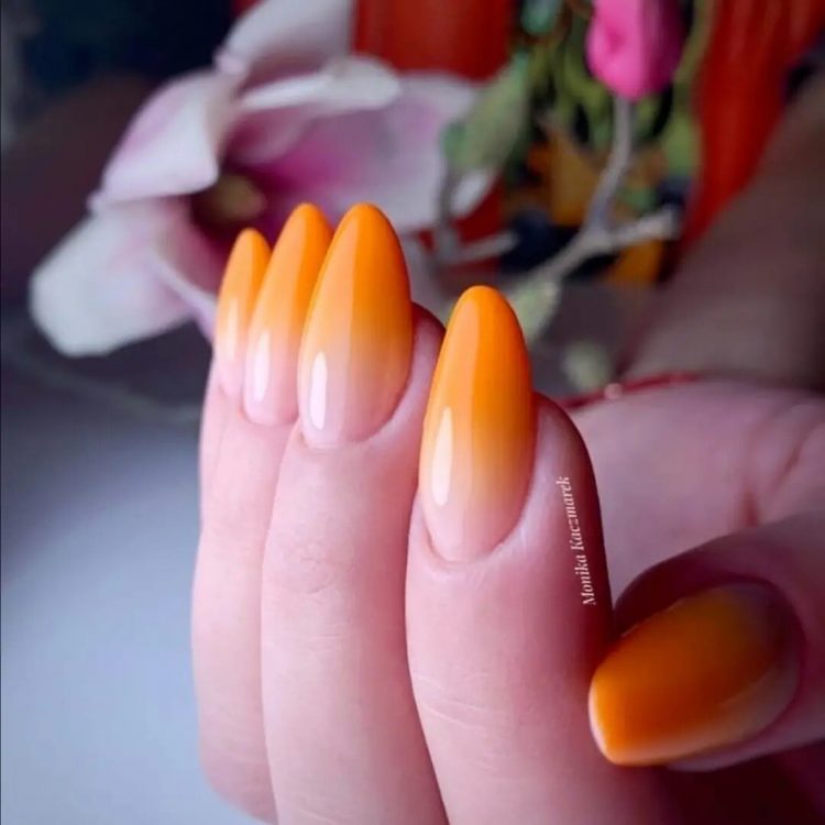 Помаранчеві нігті з ефектом омбре