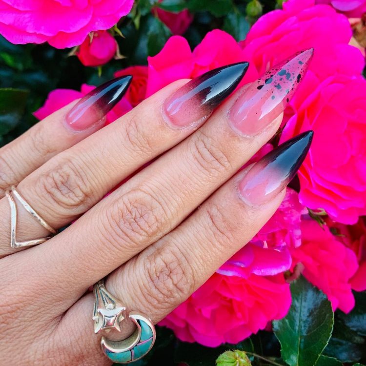 Довгий чорний манікюр з ефектом омбре підійде і для офіційного заходу, і для виходу у світ. Він завжди виглядає однаково розкішно та ефектно.