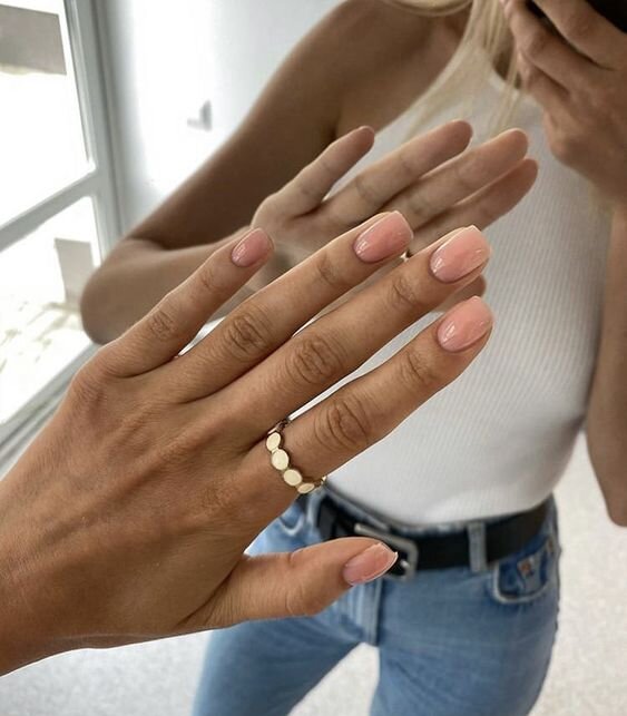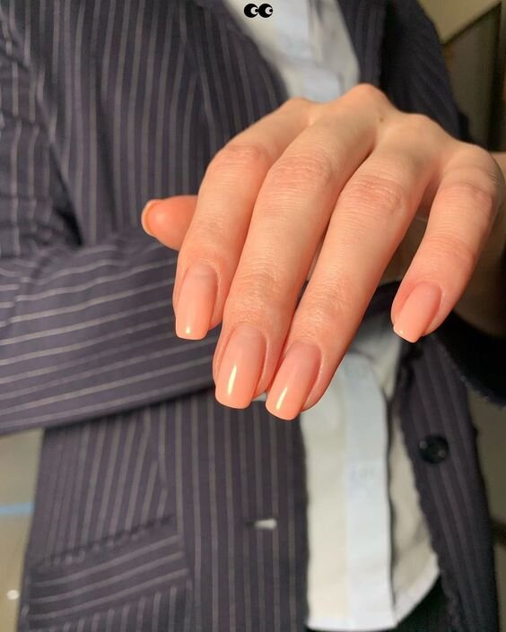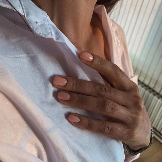 Ніжні персикові відтінки на коротких нігтях – мінімалістичний манікюр, який вартий вашої уваги. Можете цього року не обтяжувати свій манікюр яскравим та блискучим дизайном, чим все буде простіше, тим краще.