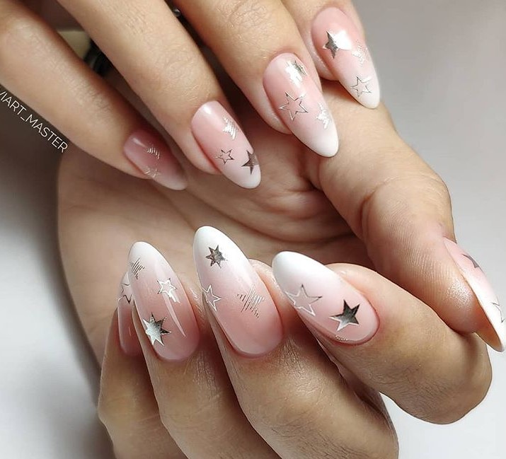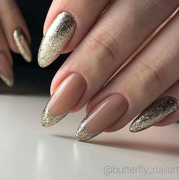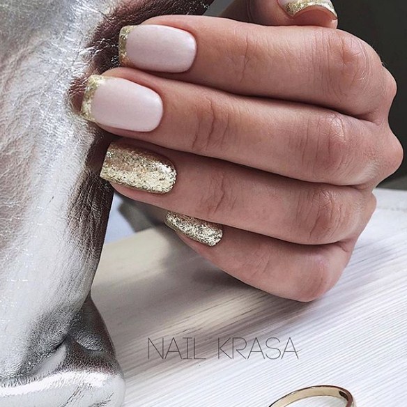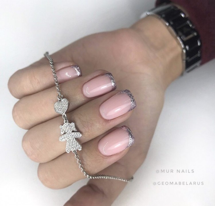 Якщо ви обмежені строгим дрес-кодом, тоді не вдасться зробити занадто насичений дизайн. Але не варто впадати у відчай, майстри нейл-арту можуть створити чарівний новорічний дизайн і на нюдових відтінках лаку. Наприклад, дуже стримано і водночас святково виглядає французький манікюр із блискучою усмішкою на прозорому чи нюдовому тоні лаку.