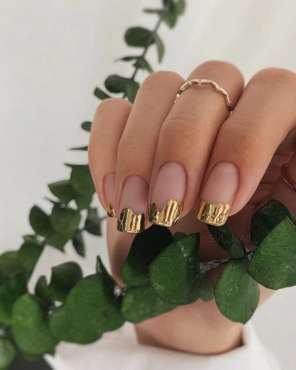Незважаючи на те, що блискучий дизайн найбільш популярний у період новорічних свят, цей варіант нейл-арту можна сміливо зробити у будь-якому іншому сезоні, оскільки м’яке сяйво золота робить дизайн дорожчим та розкішнішим.