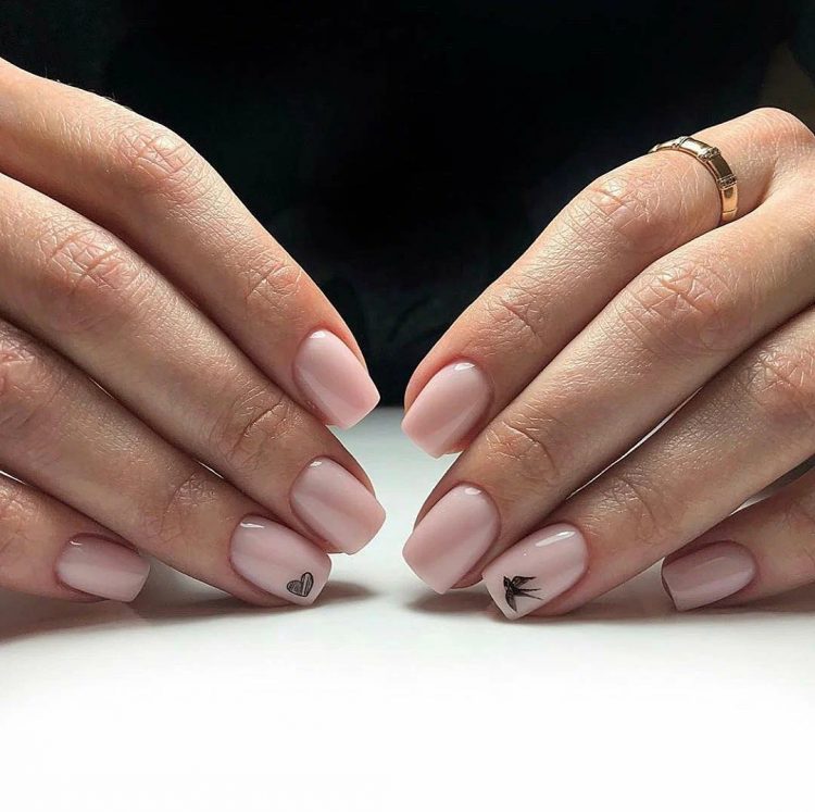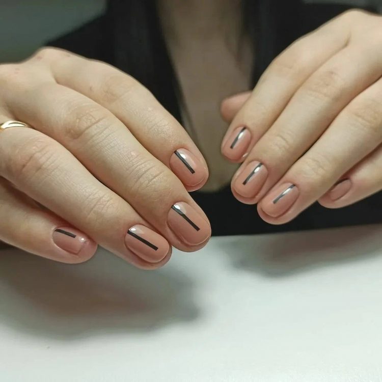 Мінімалізм та манікюр у нюдових відтінках незмінно ходять поруч один з одним і це не дивно. Щоб злегка освіжити нюд, можна додати просту лінію або точку, або невеликий малюнок.