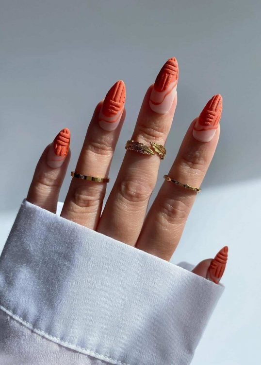 Модні ідеї помаранчевого дизайну нігтів із осіннім настроєм 2023