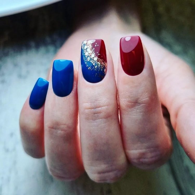 Поєднання бордового та темно-синього кольору досить рідко використовується в манікюрі, і дарма! Ці насичені та глибокі відтінки чудово доповнюють один одного, створюючи вишуканий та розкішний образ.