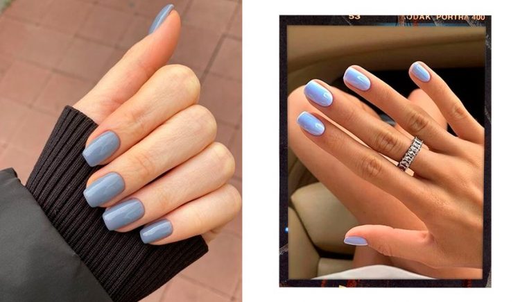 Блакитний лак найкраще виглядає на коротких нігтях. Але якщо ви не готові прощатися з довжиною, попросіть майстра надати нігтям квадратної форми.
