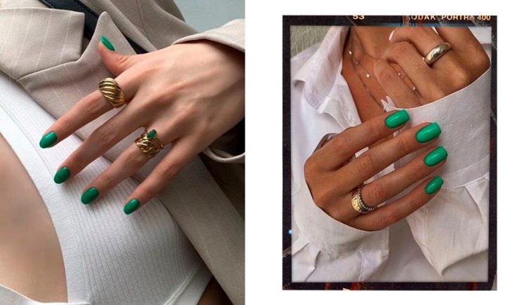 Якщо ви віддаєте перевагу класичному стилю, відмовтеся від довгих нігтів на користь коротких квадратних форм. Доповніть свій лук масивними прикрасами, наприклад, кільцями, браслетами, щоб зробити образ ефектнішим і яскравішим.