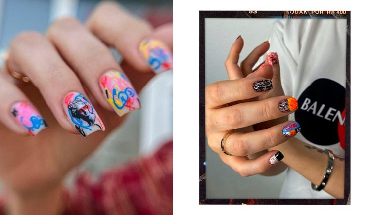 Якщо ви не з тих, хто віддає перевагу однотонному манікюру, зверніть увагу на ще один тренд — дизайн із графіті. Він зробить образ стильнішим і надасть йому особливого настрою.