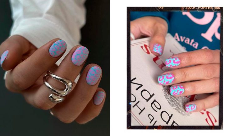 Якщо не боїтеся експериментів, зробіть манікюр із тваринним принтом із заміненими кольорами. Наприклад, з фіолетово-жовтою зеброю або зелено-сірим тигровим принтом. Покриття може бути як глянсовим, так і матовим.
