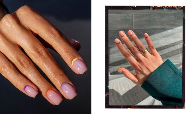 Цієї весни нам пропонують спробувати зворотний французький манікюр. Лунки можуть бути промальовані тонкою білою лінією або заповнені лаком у яскравому відтінку.