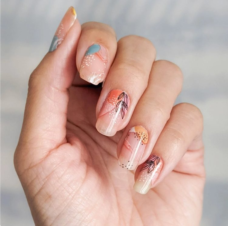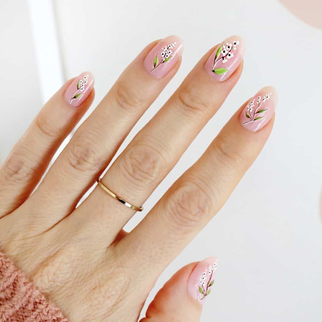 Якщо ви шукаєте ідею весняного дизайну нігтів з квітковими візерунками і при цьому віддаєте перевагу стриманій палітрі, спробуйте зупинити свій вибір на цьому вишуканому нейдовому нейл-арті.