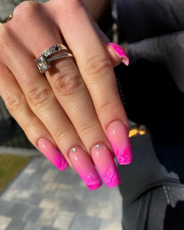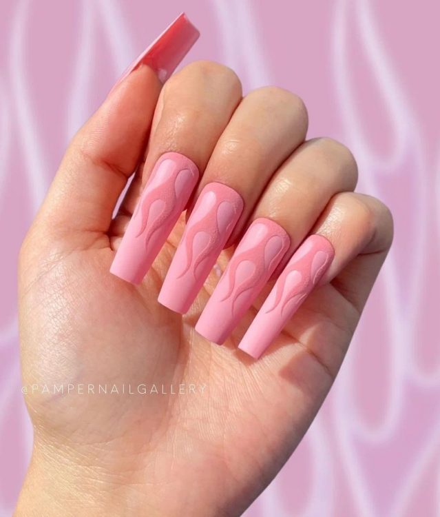 Рожевий вогняний манікюр створить яскравий акцент в образі, навіть якщо у вас строгий і стриманий стиль. Полум’яні нігті – ідеальний нейл-арт для впевнених у собі жінок, які люблять перебувати в центрі уваги.