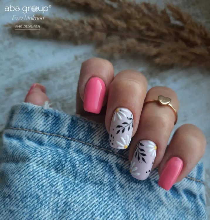 Стильний сірий манікюр – це безпрограшний варіант, проте можна спробувати додати до нього трохи романтики за допомогою рожевого лаку. Доповніть весняний дизайн ніжними квітковими візерунками, наклейками або блискітками. Оригінальності додасть поєднання глянсового та матового фінішу.