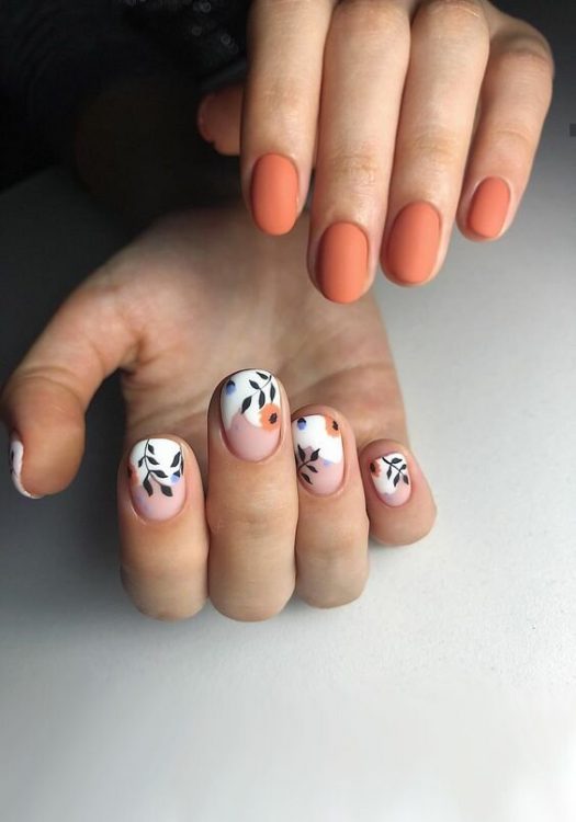 Здивуйте всіх оточуючих цієї осені жіночним та трендовим манікюром гірчичного кольору. Відтінок охри так само відмінно підійде для холодної пори року. Майстри нейл індустрії пропонують нам урізноманітнити дані кольори за допомогою квіткових візерунків чи абстракцій.