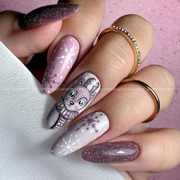 Бузковий відтінок став популярним ще навесні минулого року. І кожного нового сезону цей колір стає дедалі актуальнішим. Взимку майстри нейл-арту пропонують оформити свої нігті в приглушений фіолетовий, який більше підходить до зимового пейзажу. Цей відтінок чимось схожий на рожевий але в манікюрі виглядає зовсім інакше, ефектніше і красивіше.