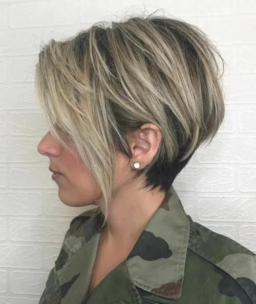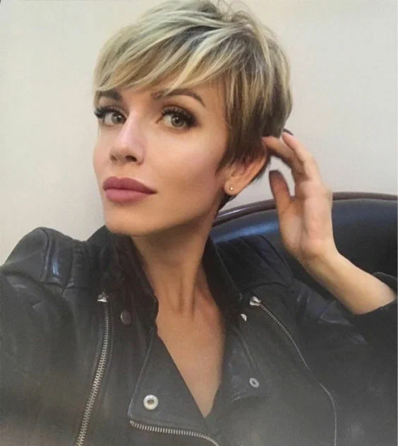 Виглядати сучасно, сексуально та зухвало красуням цього року допоможе запаморочлива ультракоротка піксі з цікавим фарбуванням. Цей варіант стрижки красиво демонструє зону декольте, акцентує увагу на вилицях.