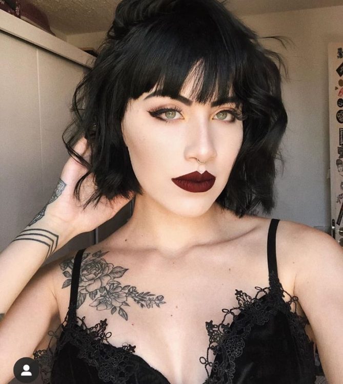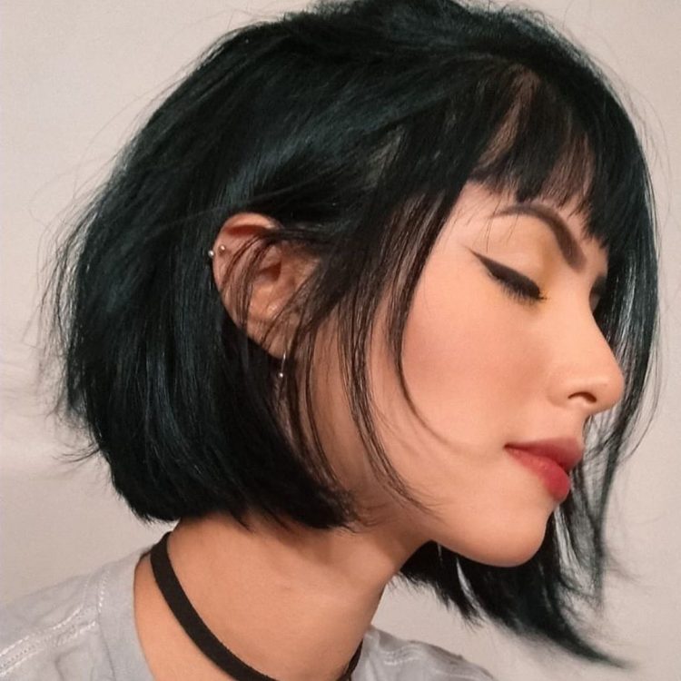 Змінити свій імідж в 2022 можна за допомогою короткого фактурного каре з чубчиком. Симбіоз графіки, пасм різної довжини і фактури надає зачісці форму класичного квадрата, а можна добитися і форми водоспаду. До такої стрижки підійдуть довгі асиметричні, рвані та прямі чубчики.