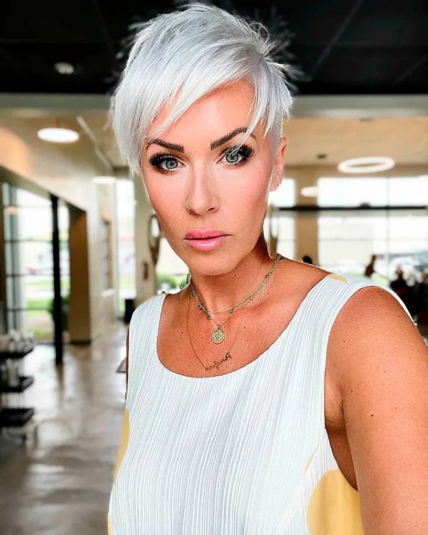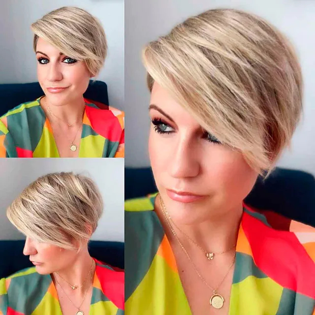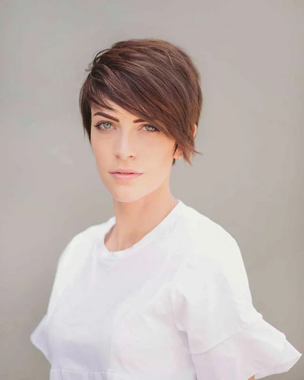 Ультрамодні короткі зачіски з чубчиком, вкладеним на бік, найкраще обрамляють і пом’якшують жіноче обличчя. Така стрижка має досить багато варіацій, від класичної піксі до асиметричного бобу. Це сміливий та стильний варіант, що вимагає мінімальних зусиль та часу на укладання.