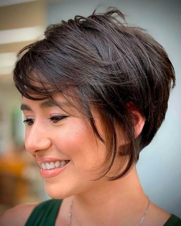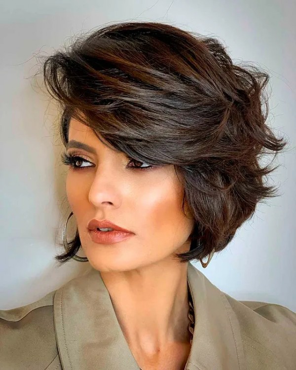 Така зачіска виділить вас серед тисяч жінок, тому носіть її з впевненістю та властивим вам шиком. Зовсім не важливо, яке у вас волосся, ці стрижки роблять тонкі локони більш об’ємними, а хвилясті пасма будуть нагадувати природний пляжний стиль. Ось кілька найпопулярніших способів прикрасити ваше коротке волосся чубчиком, вкладеним на бік.