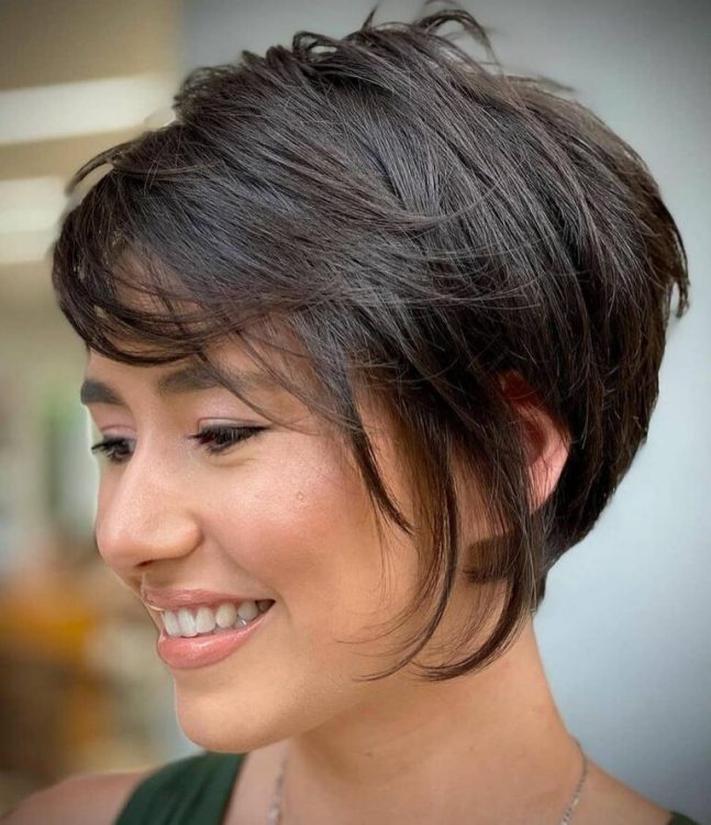 Це своєрідне поєднання піксі та бобу. Відмінна риса цієї зачіски – чіткі контури. Піксі-боб підійде жінці будь- якого віку і з будь-яким типом волосся – рідке та пористе буде виглядати більш об’ємно, густе – стримано та елегантно. Актуальна як для прямого, так і для кучерявого волосся.