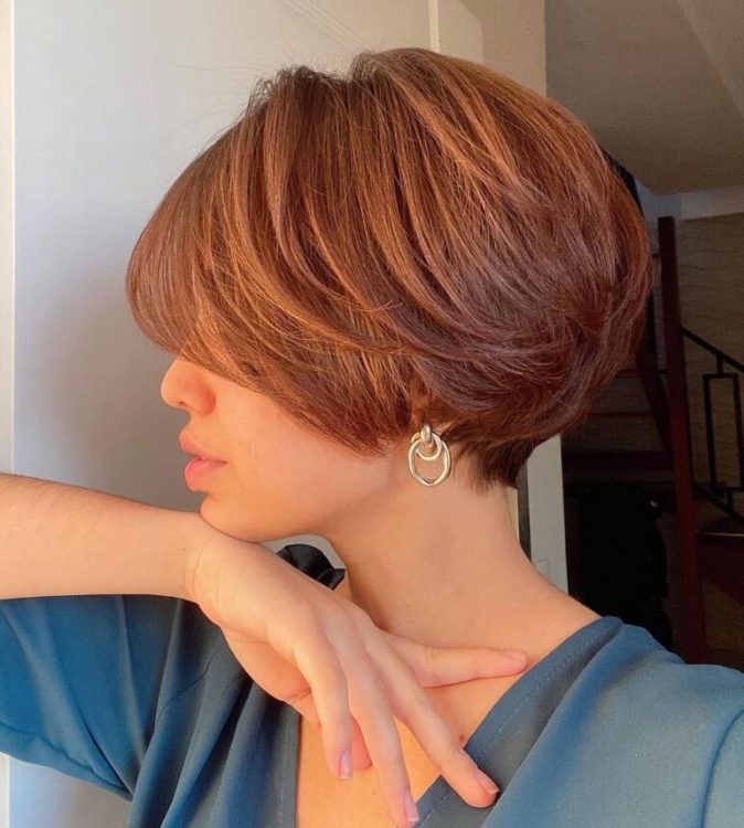 Доречним доповненням до модної жіночої стрижки на коротке волосся у 2022 році буде стильне фарбування. Особливо актуальні мідний, медовий та яскраві відтінки – блакитний, рожевий.