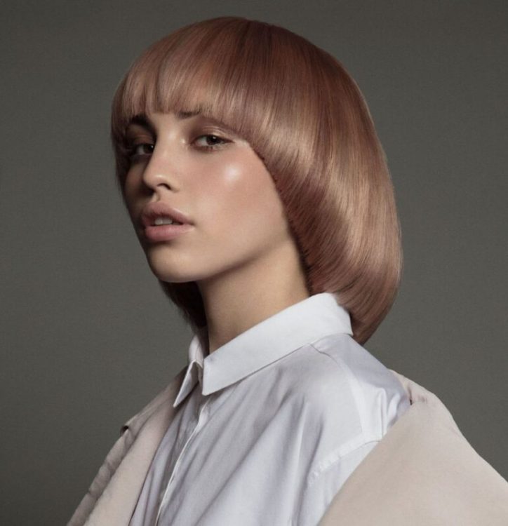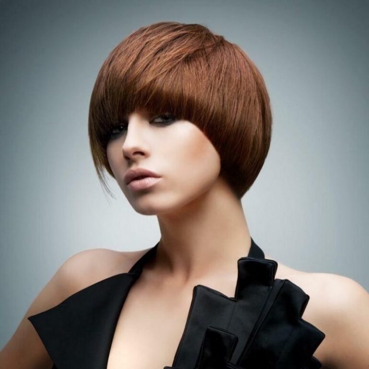 Відмінна риса цієї стрижки – чіткі лінії, що підкреслюють контур обличчя та голови. Цей вид каре актуальний для тих, хто готовий щоранку вкладати чубок.