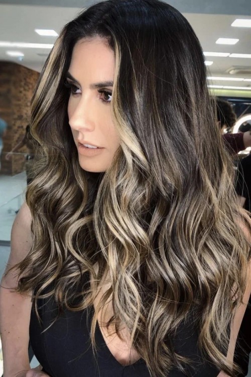Світло-карамельний та медовий «балаяж» на темному тлі виглядає гідно та максимально дорого.