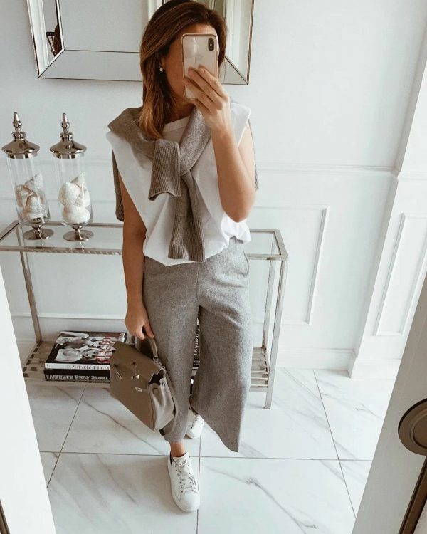 Якщо чорно-біла кольорова гама – не ваш вибір, то можна замінити чорні штани на модель коричневого кольору, до якої додати звичайну білу футболку або блузку, накинувши на плечі жакет білого (або будь-якого світлого) кольору.