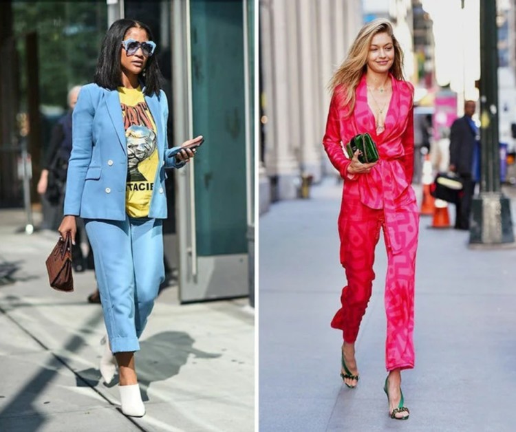 Брючні костюми актуальні в будь-який час року. Літні варіанти в цьому сезоні більше схожі на піжаму. Носити їх потрібно або на голе тіло, або поверх футболки з принтом.