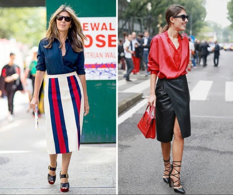 Спідниця міді і сорочка – рішення не тільки для тих, хто кожен день проводить час в офісі за роботою. Яскраві принти зроблять це поєднання менш суворим (але все ще прийнятним для офісу). Якщо додати до комплекту пару аксесуарів, наприклад, окуляри і сумку, то вийде стильний літній образ.