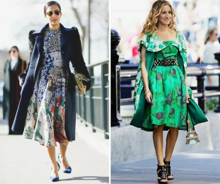 Яскравий принт за бажанням можна поєднувати з іншими видами малюнків. Наприклад, до сукні з великим орнаментом варто додати клатч з анімалістичним принтом.