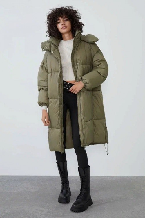 Пуховики середньої довжини про крою такі самі, як і максі. В моді у цьому сезоні будуть варіанти з високим коміром, косими або прямими стібками. Вони можуть бути зовсім без прострочки, це моделі на запах з поясом. В цьому році дуже багато актуальних пуховиків різних відтінків зеленого.