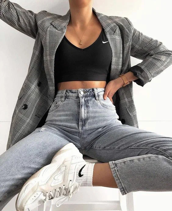 Наступний «спекотний» тренд нинішнього сезону — це ніжний топ, виконаний з легкого струмуючого атласу. Його сміливо можна назвати сексуальною особливістю сучасних образів. Щоб у результаті виходили гармонійні повсякденні луки з романтичним настроєм, ніжні топи у лаконічному виконанні найкраще комбінувати з базовими джинсами із завищеною посадкою. Багатошаровий тонкий ланцюжок, а також витончені мінімалістичні кросівки стануть гармонійним завершенням актуальних образів.