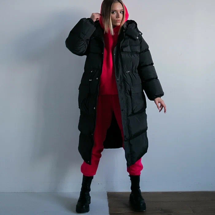 У поєднанні з модними фасонами спортивних костюмів навіть пуховик-оверсайз виглядає стильно та акуратно.