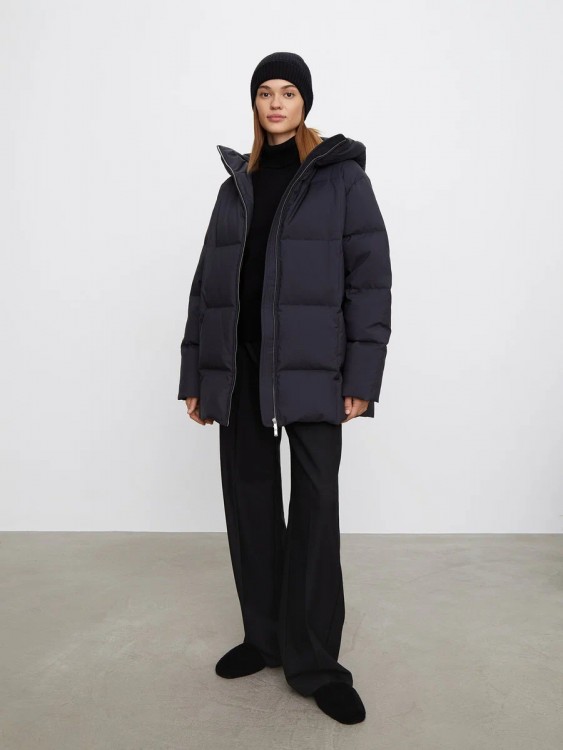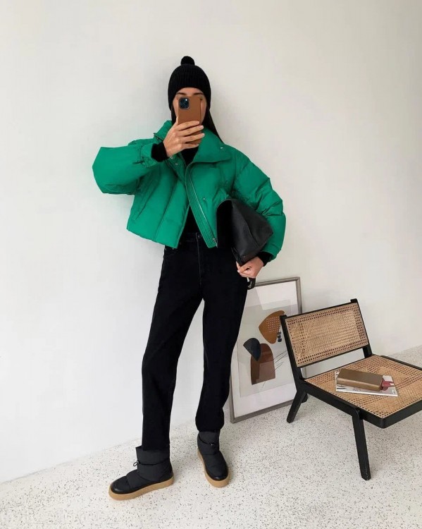 В принципі, широкі джинси можна носити із пуховиками будь-якої довжини. Але особливо стильно такі вільні моделі виглядатимуть із укороченими об’ємними пуховиками. Таке поєднання – одне із улюблених рішень серед законодавців street-style моди, такі образи ідеально підходять для повсякденних аутфітів.