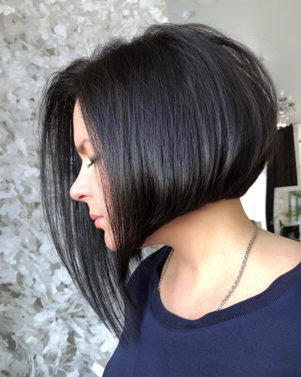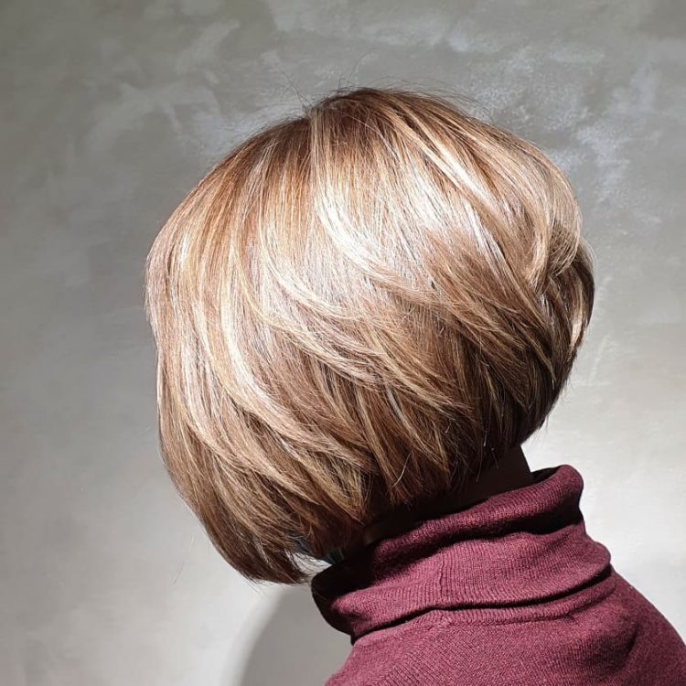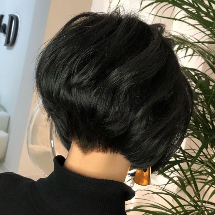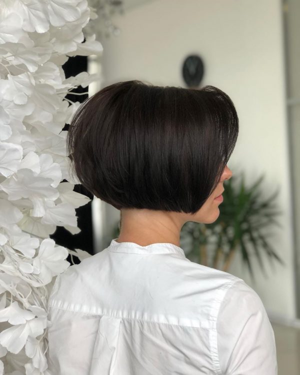 Головна особливість об’ємного бобу якраз і полягає в пишній маківці. Створюють її за допомогою градуювання. Також велику роль відіграє коротка потилиця та подовжені пасма спереду. Щоб стрижку було легше вкладати, краще відмовитися від чубчика. Жінкам 40-50 років ця стрижка дозволить знову відчути себе чарівною красунею.