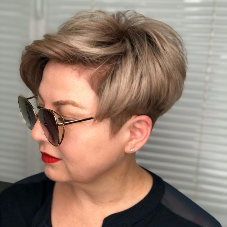 Стильна і задерикувата стрижка підійде для короткої довжини волосся. Не варто боятися, що вона покаже пухкі щічки у всій їхній красі – об’єм на маківці візуально витягне обличчя. Від чіткої гладкості та рівного зрізу краще відмовитися – потрібна саме «різхристаність», асиметрія та косий чубчик. Виголені скроні та високо піднятий ірокез підійдуть для сміливих та зухвалих круглолицих жінок.