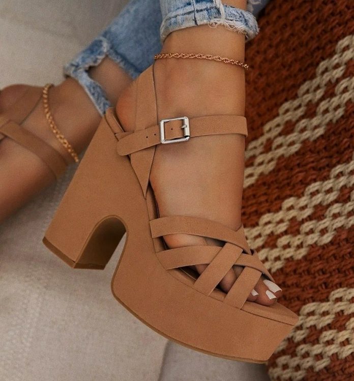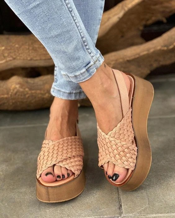 Чудовою альтернативою взуттю на високих підборах стануть сандалі на високій танкетці з плетеними вставками. Вибирайте моделі нейтрального білого або бежевого кольору, їх найпростіше комбінувати з різноманітними за стилістикою образами. Також стилісти звертають нашу увагу на те, що нюдове взуття візуально подовжує жіночий силует і робить ніжки стрункішими.