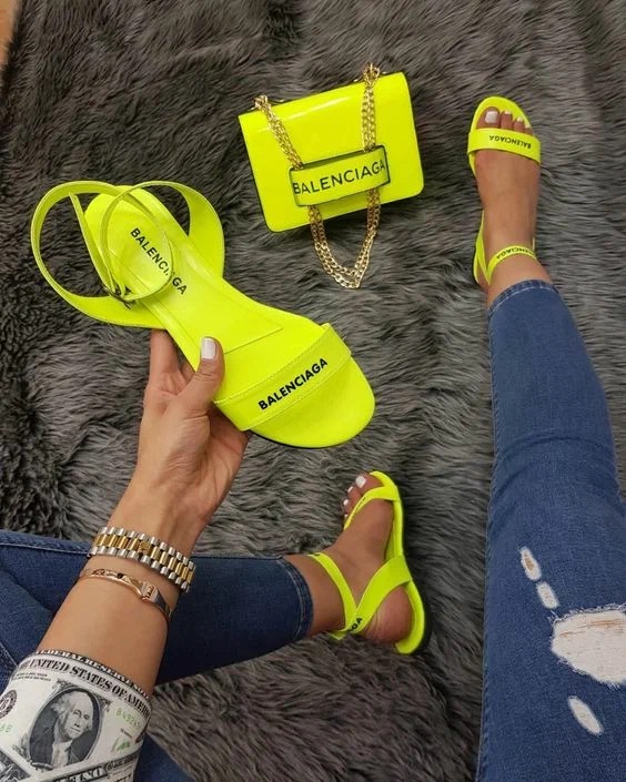 Літні аутфіти виглядатимуть максимально виразно та яскраво, якщо до них додати сандалії неонового кольору. Контрастний принт додасть родзинку взуттю на плоскій підошві.
