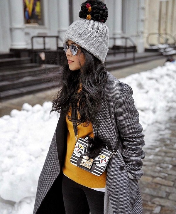 Як вже було сказано, шапки-шкарпетки дивним чином дуже добре виглядають з абсолютно різним верхнім одягом – куртками, шубами, пуховиками і пальто.
